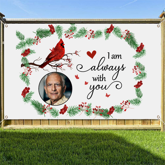 Always With You Holly Branch Cardinal Memorial Photo Personalized Banner