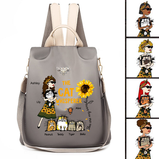 The Cat Whisperer Sunflower Stick Woman Personalized Backpack