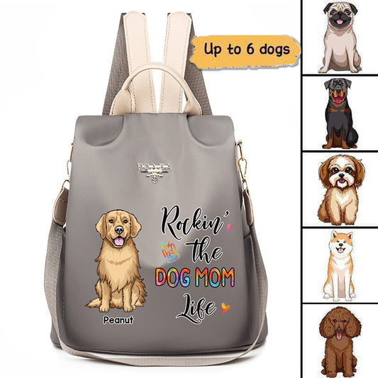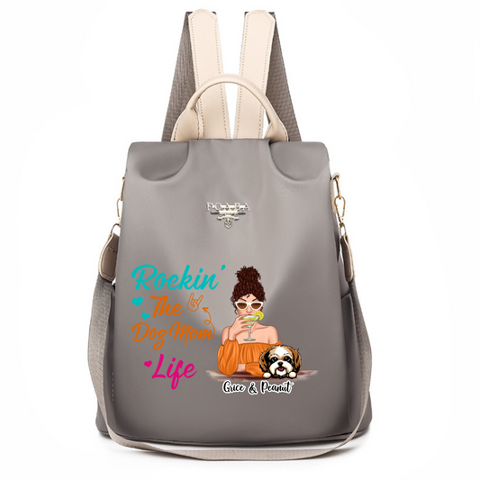 Rockin‘ Dog Mom Life Front View Sitting Dogs Personalized Backpack