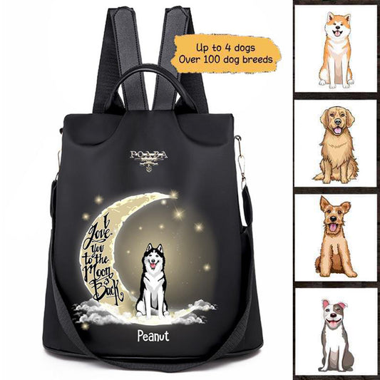 Love Dog To The Moon & Back Sitting Dog Personalized Backpack