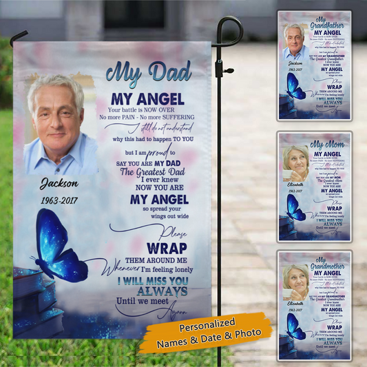 My Angel Your Battle Is Now Over Customized Memorial Flag With Your Own Photo