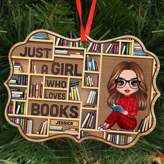 Girl Loves Books Bookshelf Personalized Christmas Ornament