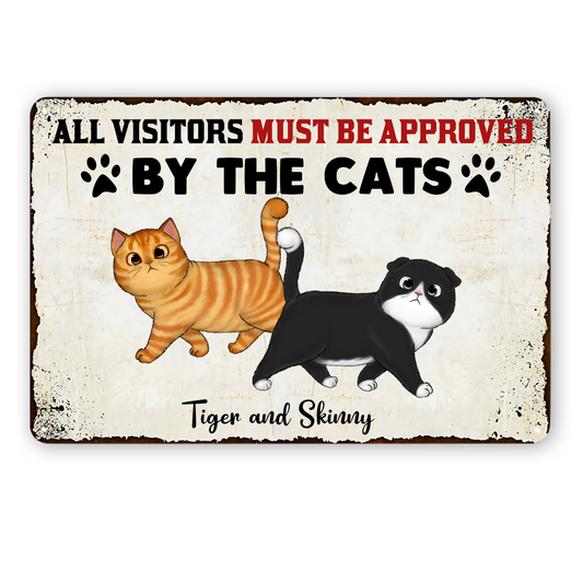 All Visitors Must Be Approved By Cats Personalized Metal Signs