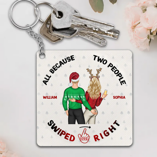 Christmas Swiped Right - Gift For Couples - Personalized Custom Acrylic Keychain
