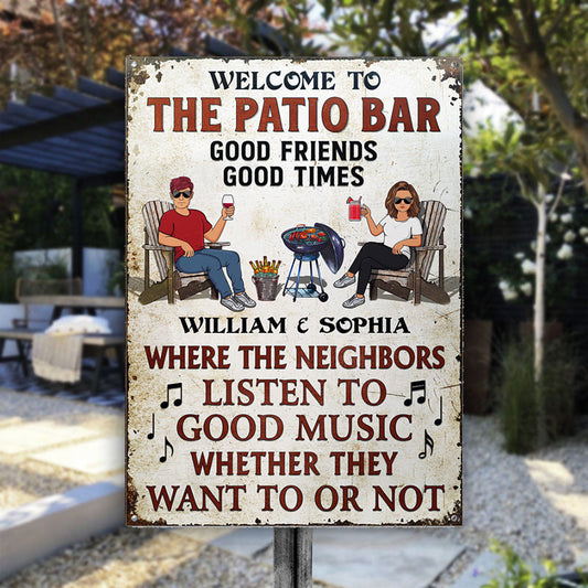 Patio Grilling Listen To The Good Music Couple Husband Wife Vertical - Backyard Sign - Personalized Custom Classic Metal Signs