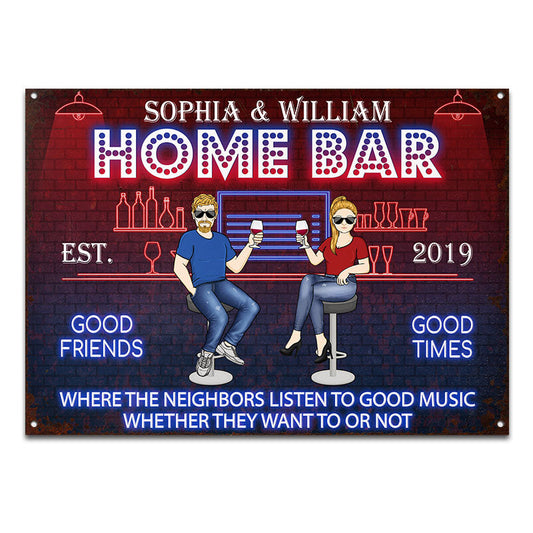 Home Bar Listen To The Good Music Husband Wife - Couple Gift - Personalized Custom Classic Metal Signs