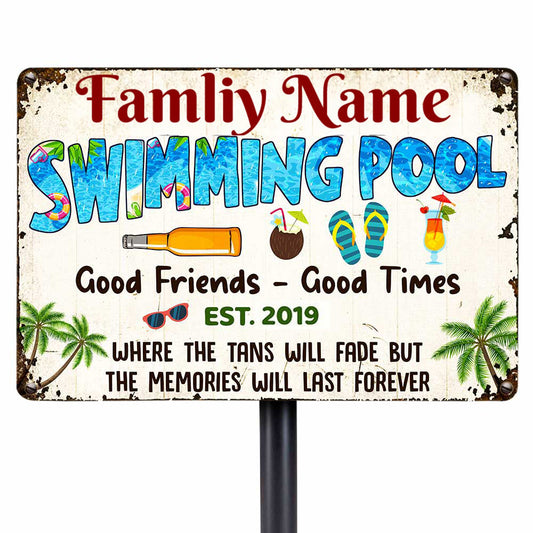 Poolside Grilling Listen To The Good Music Couple Husband Wife Dog Lovers - Backyard Sign - Personalized Custom Classic Metal Signs