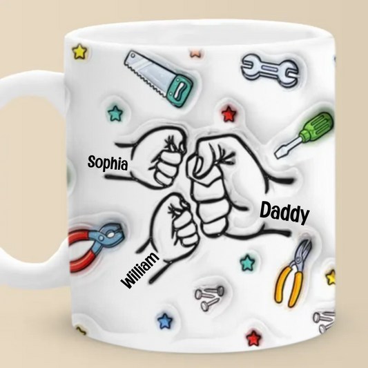 Father’s Day Fist Bump - Family Personalized 3D Inflated Effect Printed Mug - Gift For Dad, Grandpa