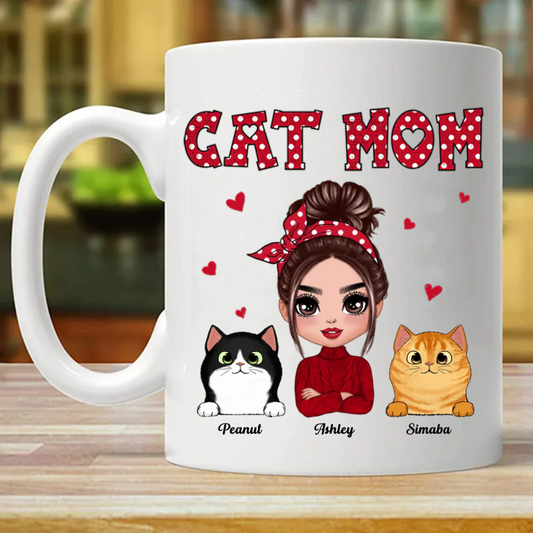 Polka Dot Pattern Doll Cat Mom Personalized Custom Mug (Double-sided Printing)