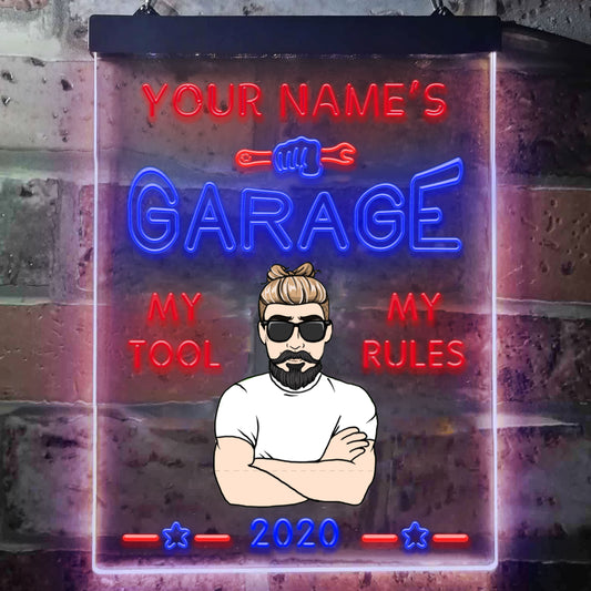 Personalized Garage Decor My Tools My Rules Neon Light LED Sign