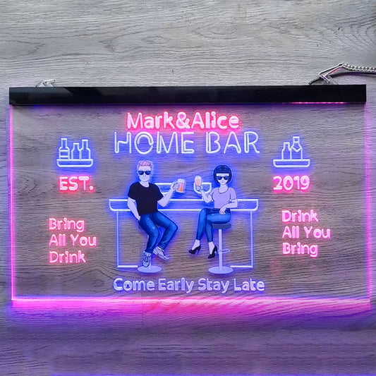 Personalized Words Home Bar Husband Wife - Couple Gift Acrylic LED Neon Light Sign