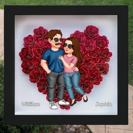 Arm In Arm Couple Personalized Heart Rose Shadow Box