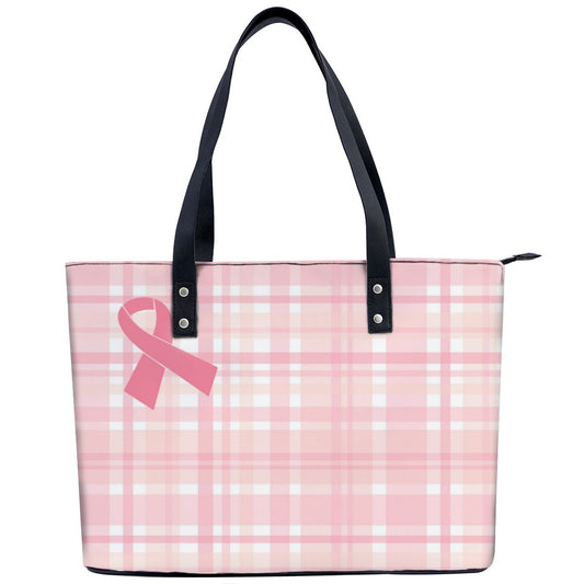 Breast Cancer Pink Ribbon Plaid Shoulder Bag No.X93MBO