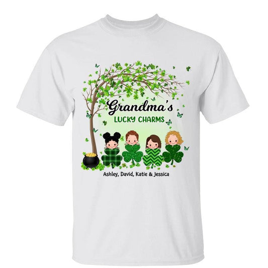 Grandma Mom Lucky Charm Peeking Kids Personalized Shirt