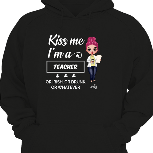 Kiss Me I‘m a Teacher Doll Teacher Personalized Hoodie Sweatshirt