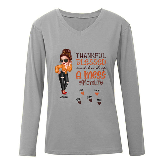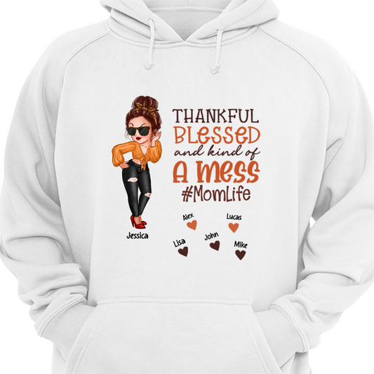 Thankful Blessed Kind Mess Mom Life Thanksgiving Personalized Shirt