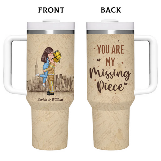 The Day I Met You I Found My Missing Piece Chibi Retro - Gift For Couples - Personalized Custom Tumbler