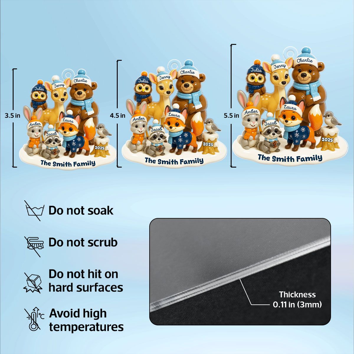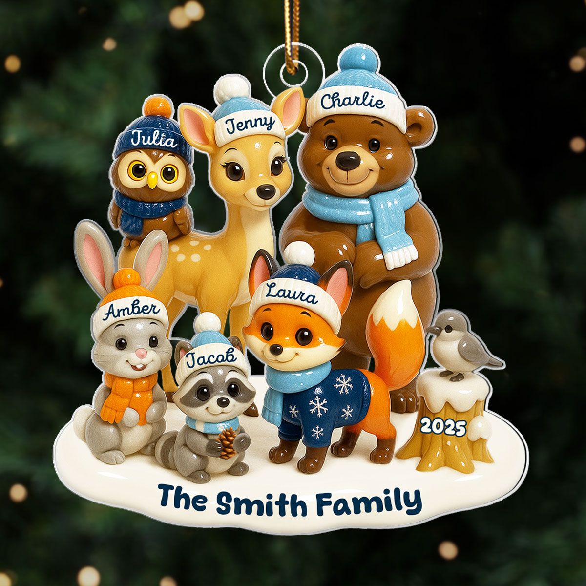 3D Effect Woodland Family Personalized Acrylic Ornament, Christmas Decor