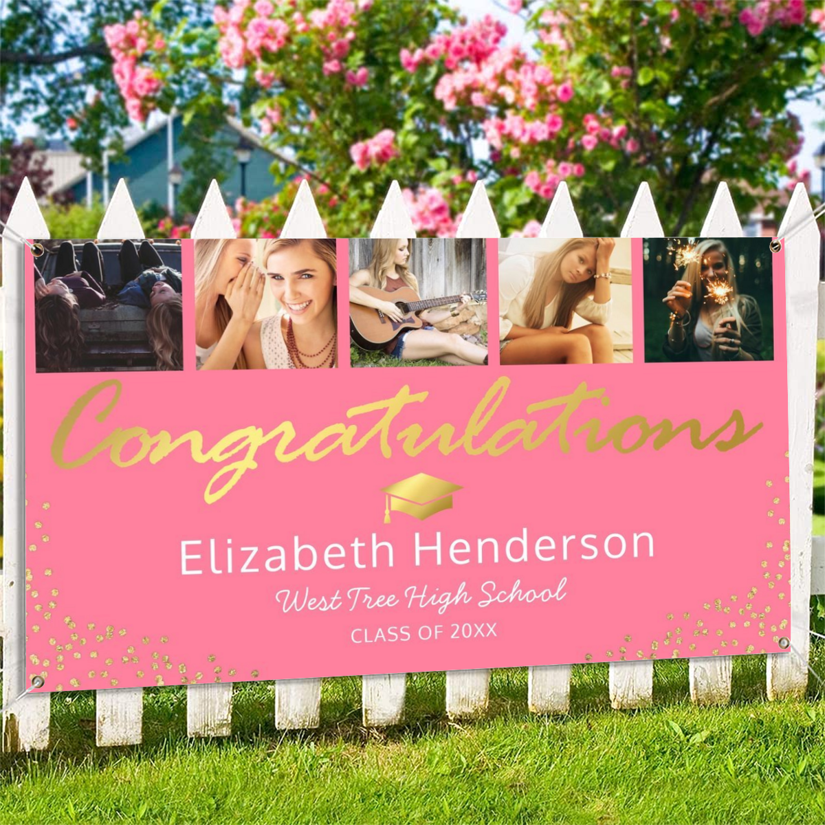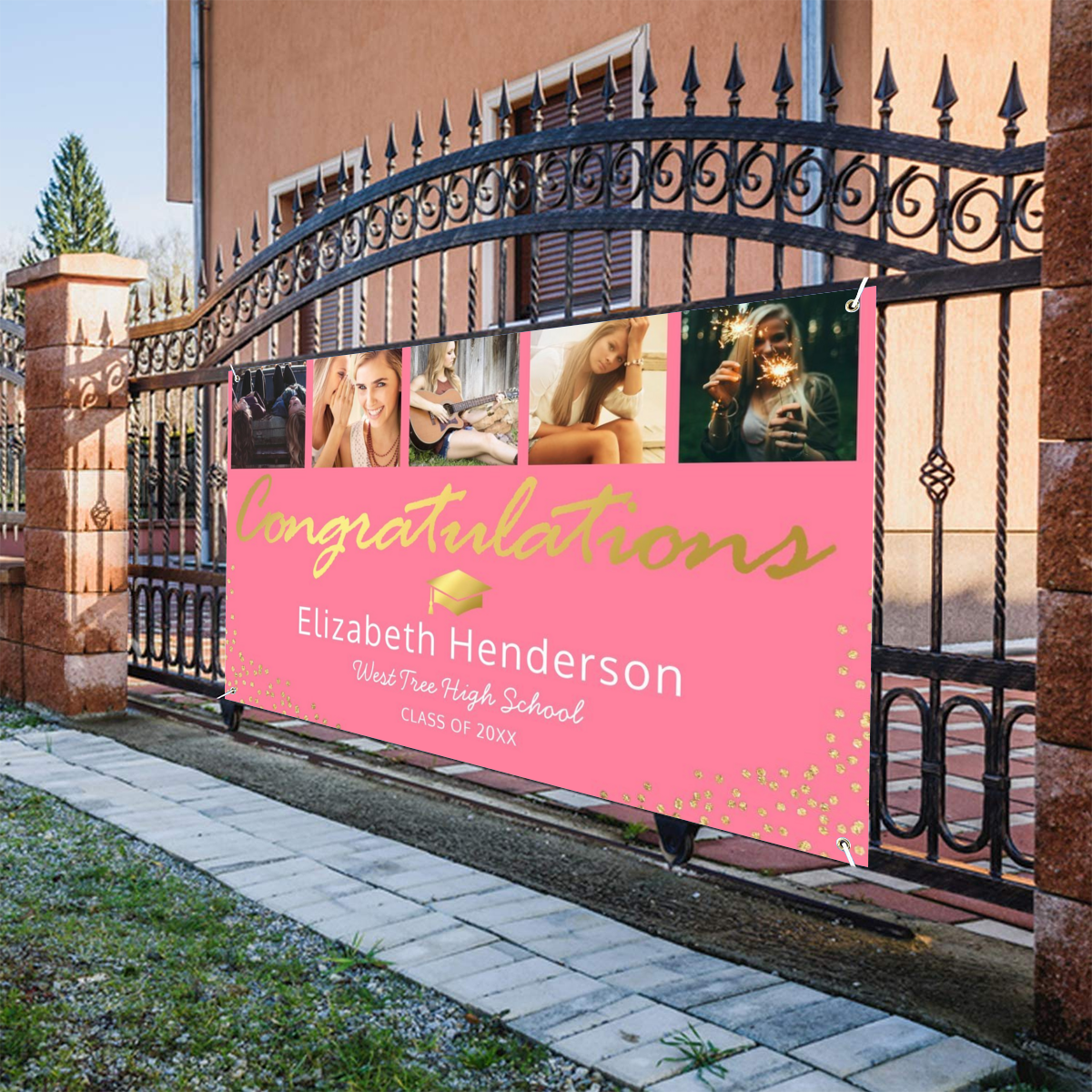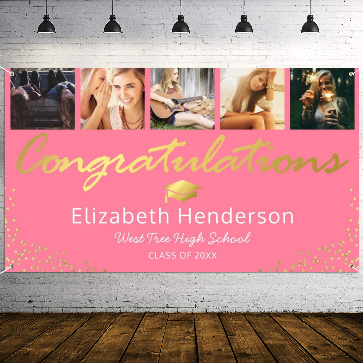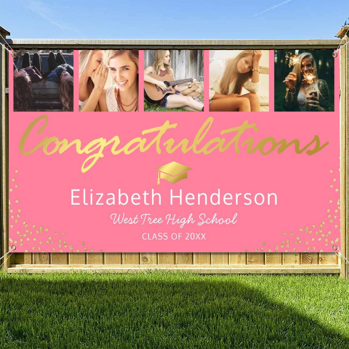 2022 Personalized Name/Photo, 5 Photo Pink Gold Graduation Party Banner