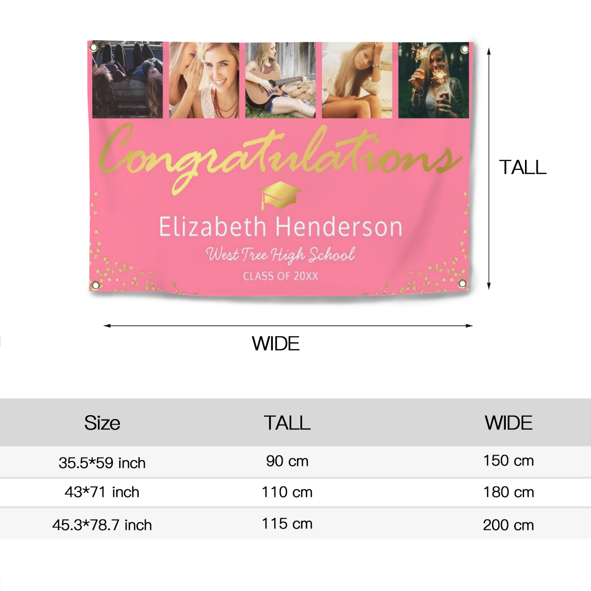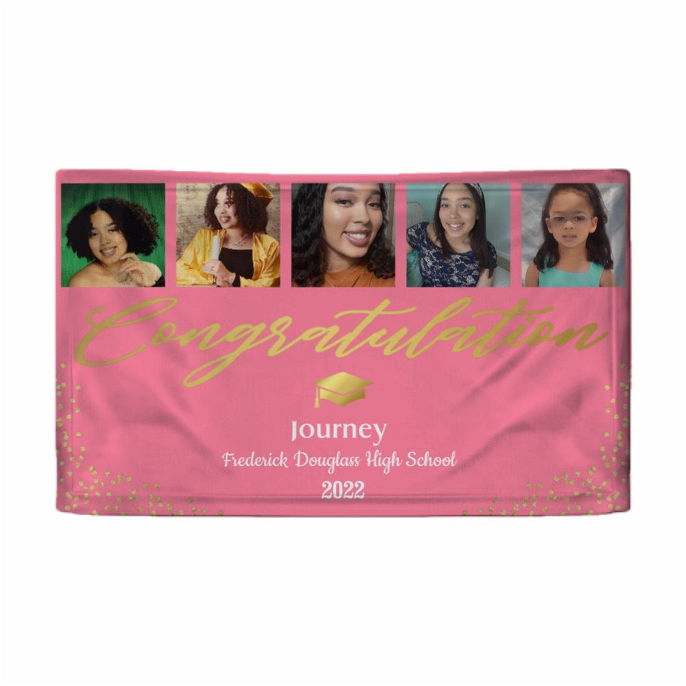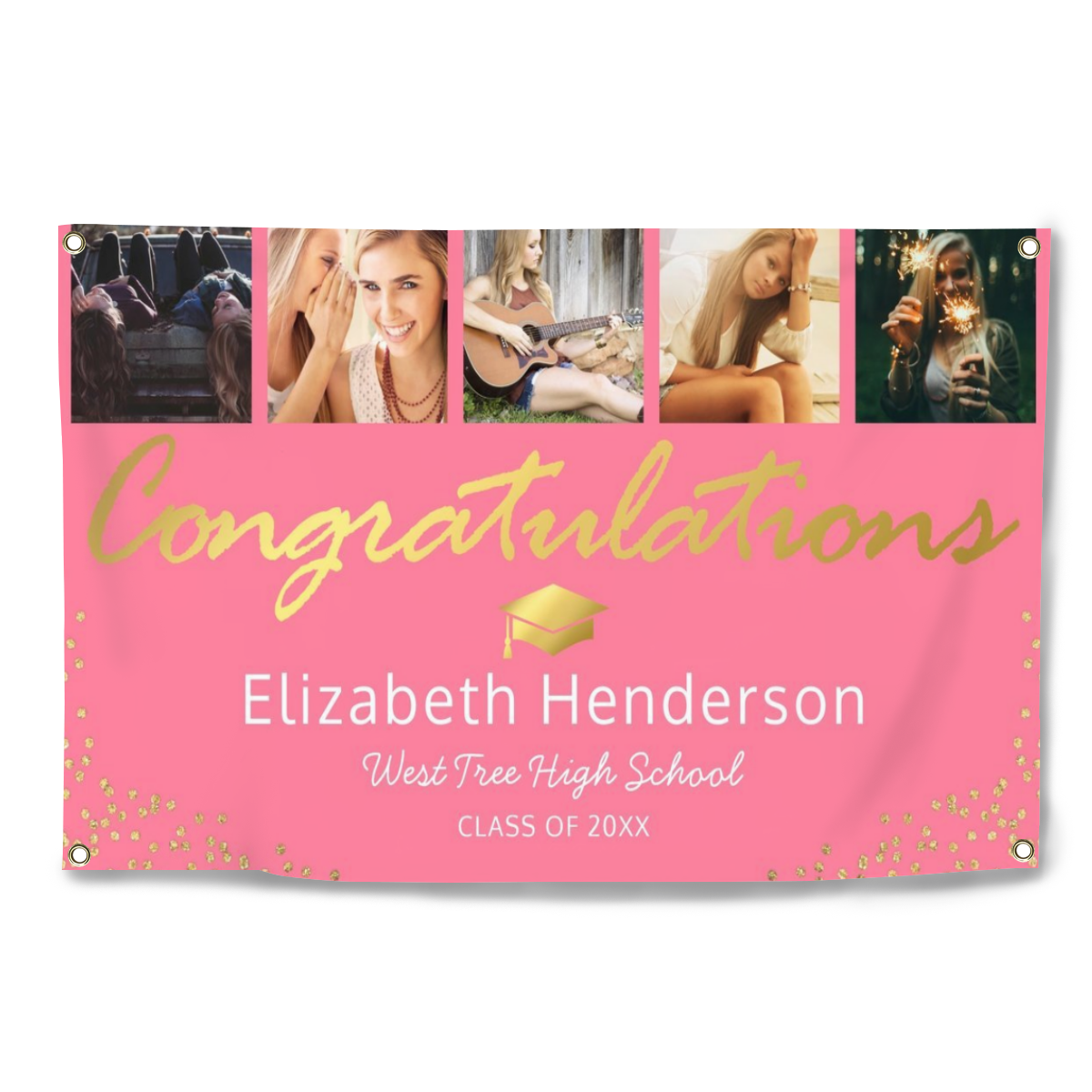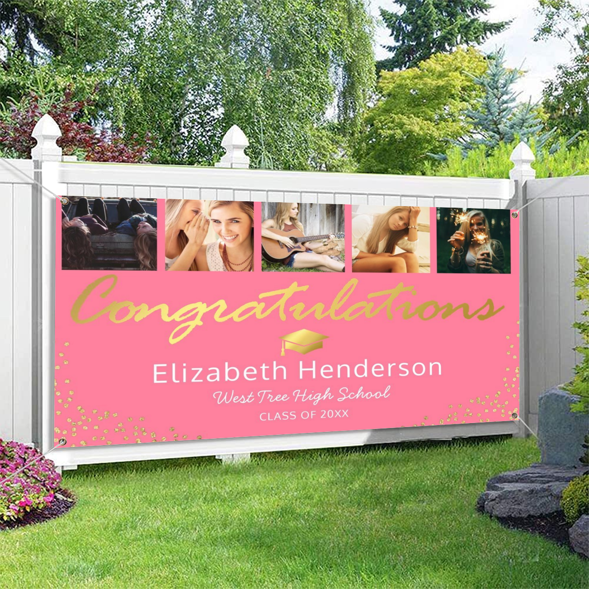 2022 Personalized Name/Photo, 5 Photo Pink Gold Graduation Party Banner