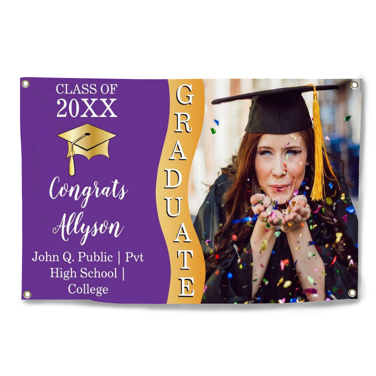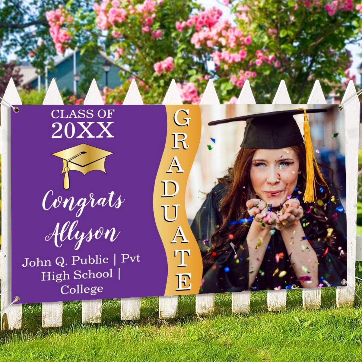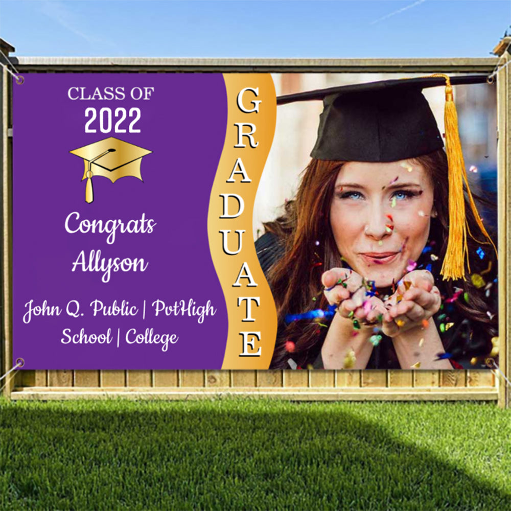 2022 Personalized Name/Photo, 7 Colors Congrats Graduate Wave Photo Banner