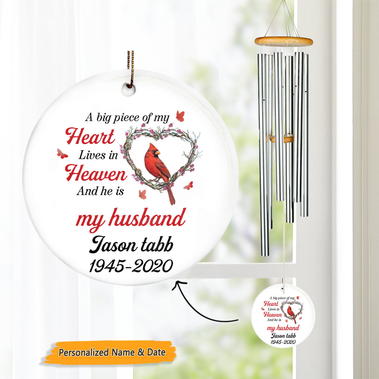A Big Piece Of My Heart Lives In Heaven Cardinal Personalized Memorial Circle Ornament Wind Chime