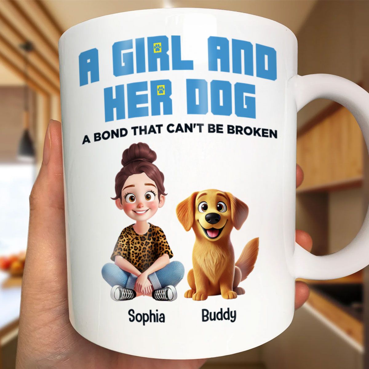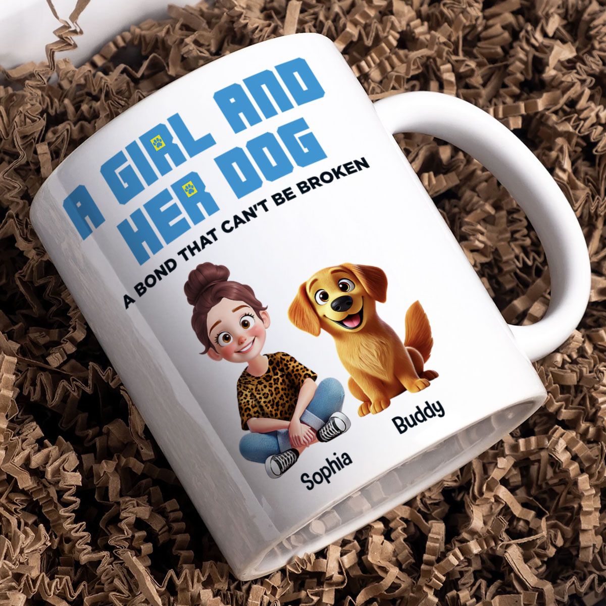 Animation Cartoon A Girl Boy And Dogs A Bond That Can't Be Broken Personalized Mug, Gift For Dog Lovers