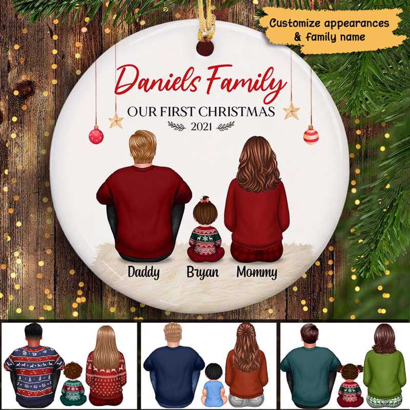 Baby First Christmas Family Personalized Circle Ornaments