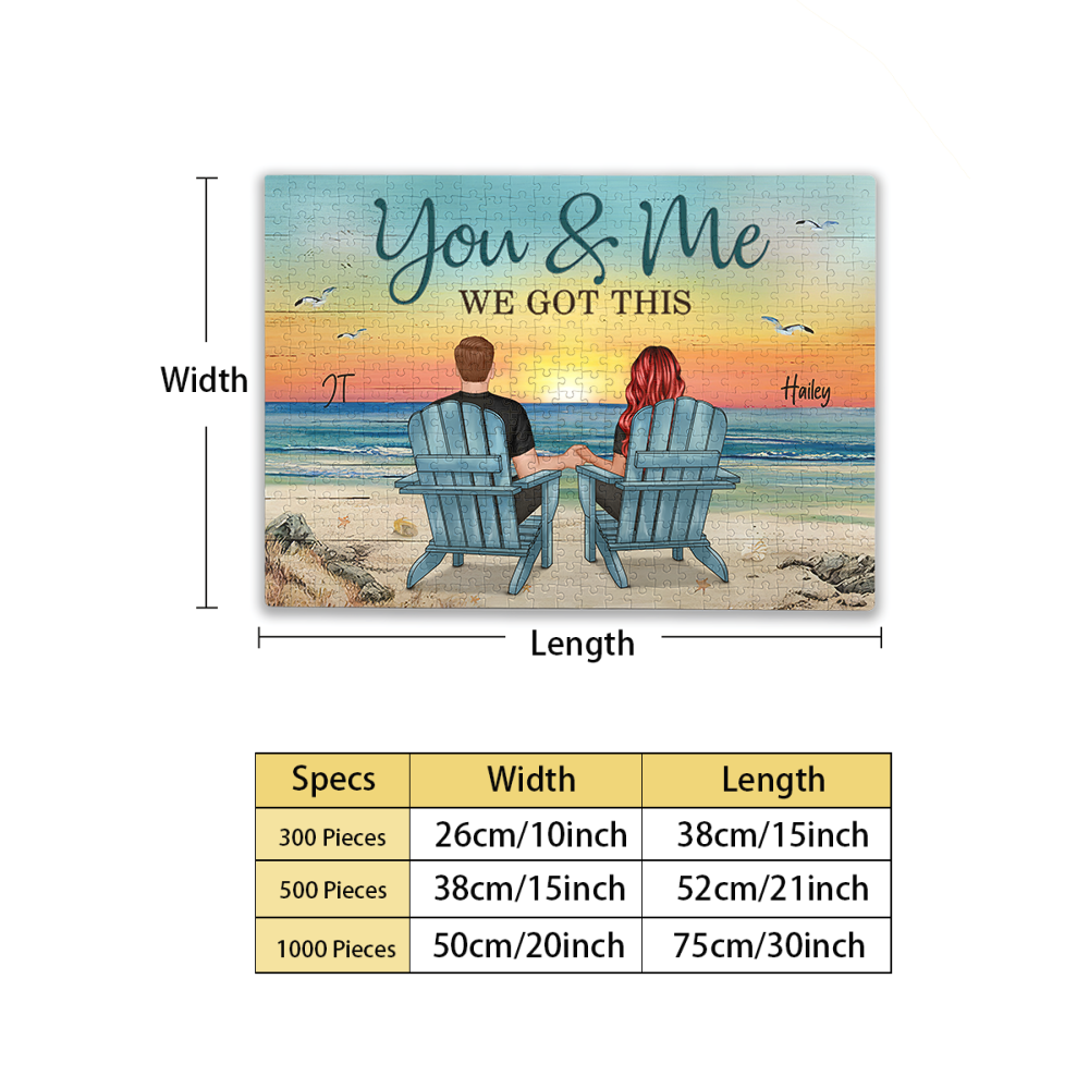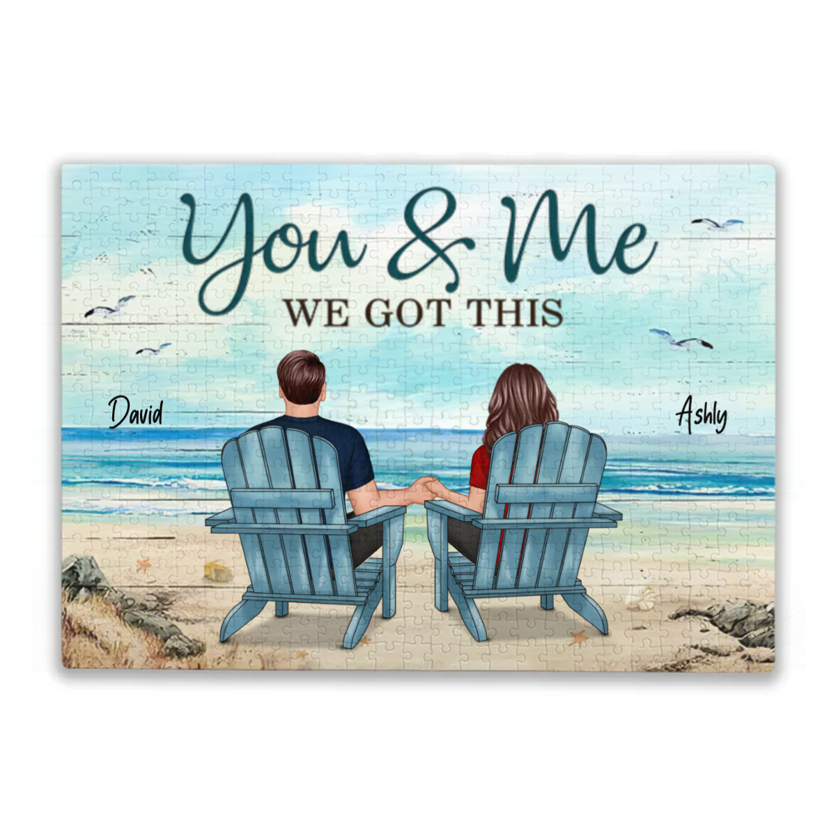 Back View Couple Sitting Beach Landscape You & Me We Got This Personalized Horizontal Puzzle