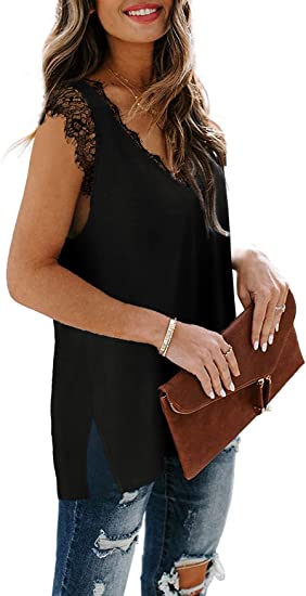 - Design: Sexy V Neck Tank Tops, Sleeveless Tops, Lace Trim, Loose Flowy, Side Split Tunic Tops
