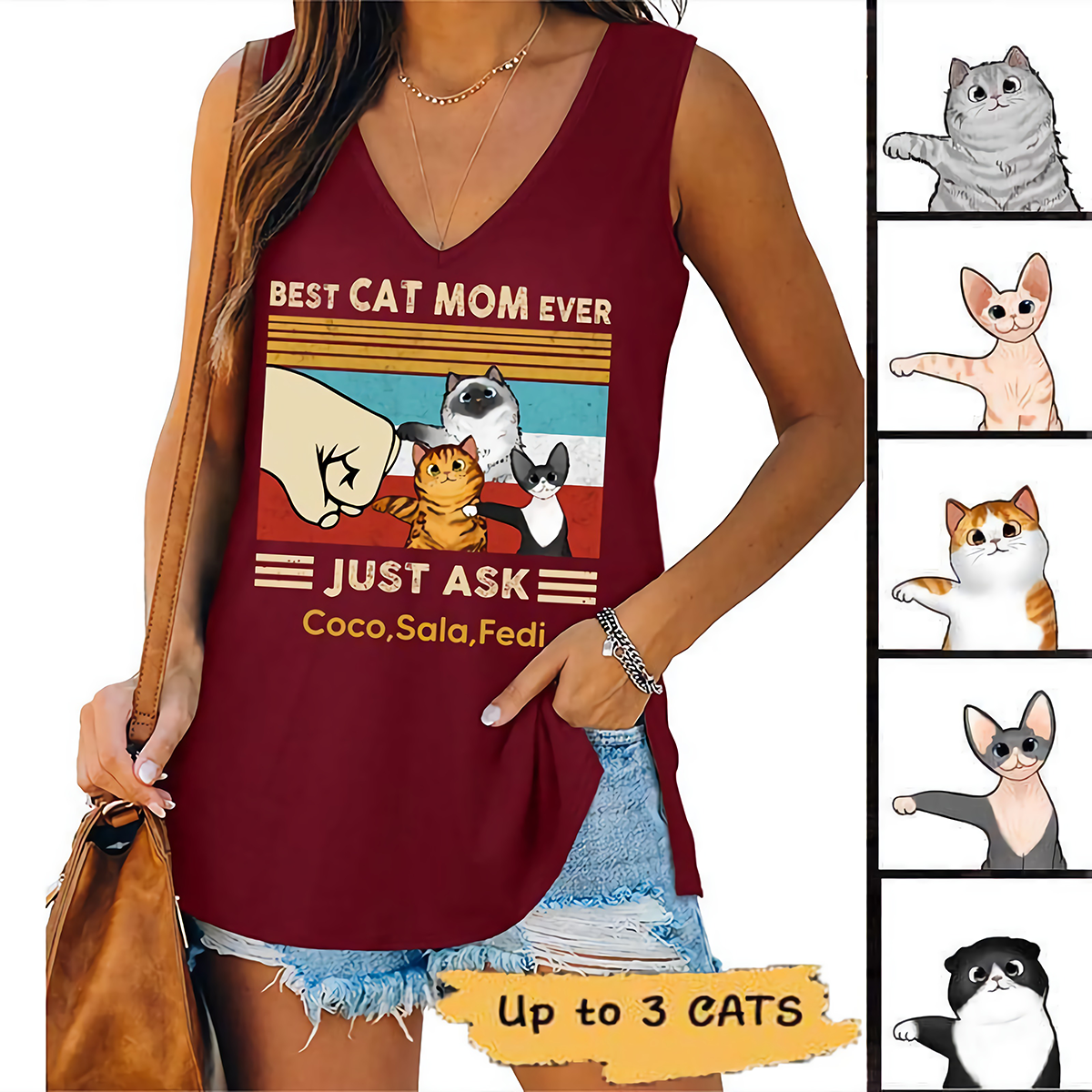 Best Cat Dad/Mom Fluffy Cat Personalized Women Tank Top V Neck Casual Flowy Sleeveless
