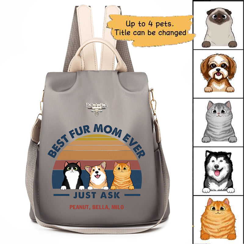 Best Fur Mom Ever Dog Cat Retro Personalized Backpack