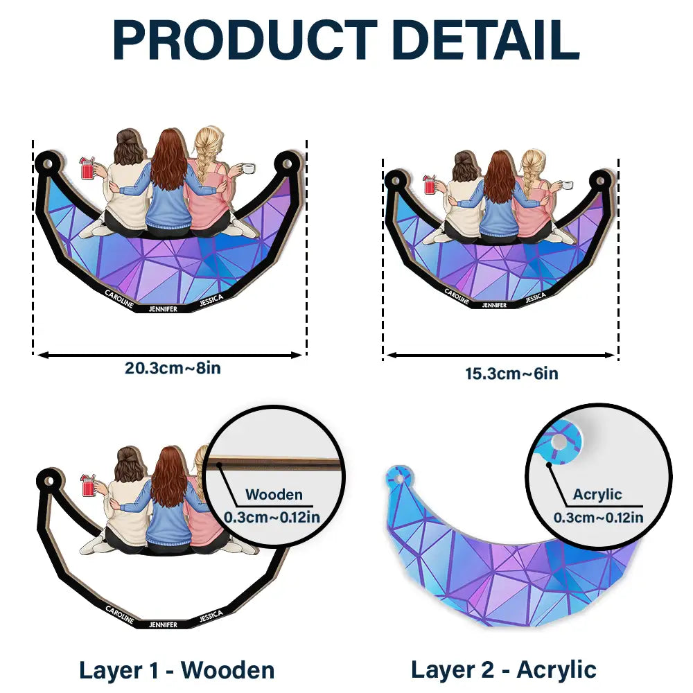 Besties Friends Sitting On The Moon - Personalized Window Hanging Suncatcher Ornament