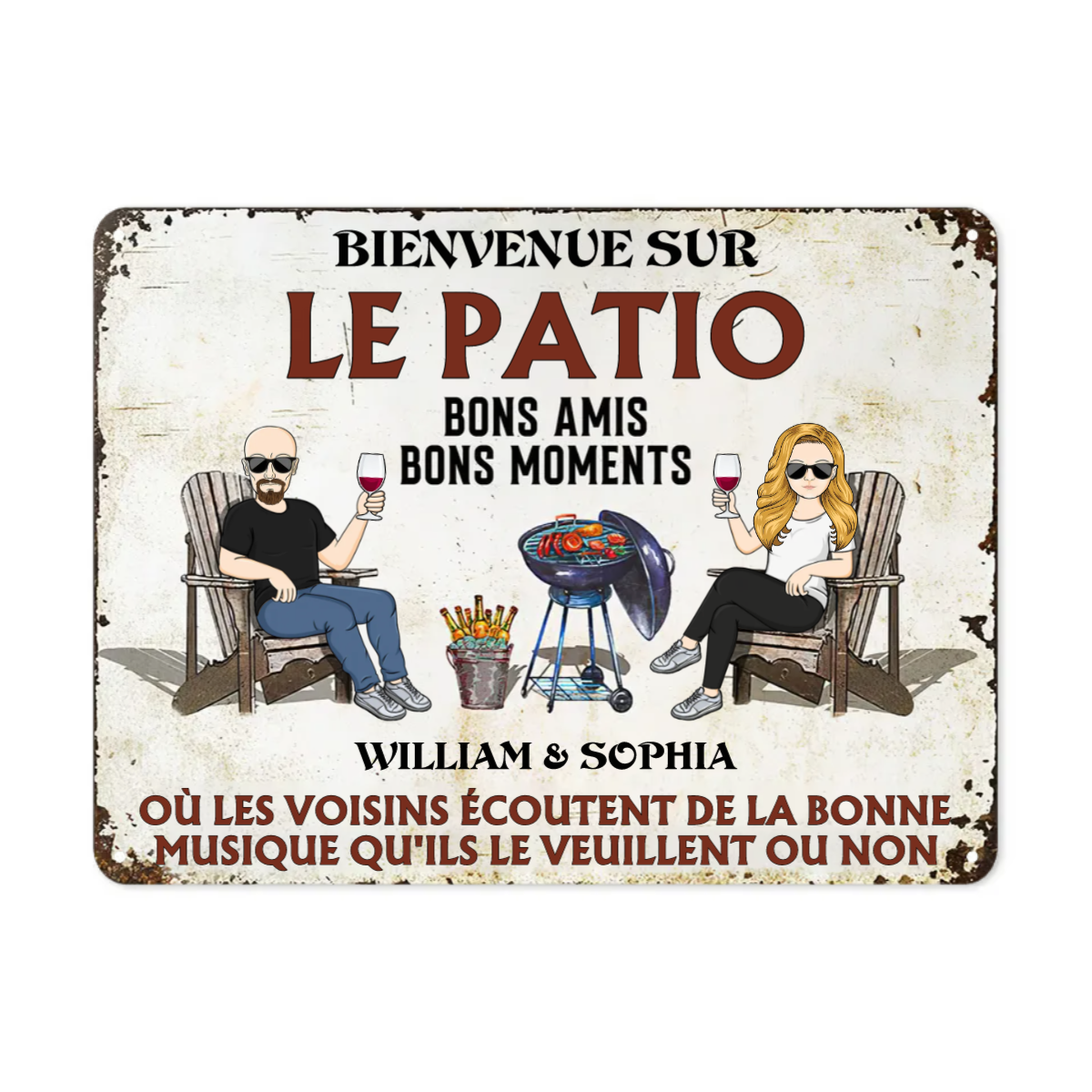 Bienvenue sur le patio - Panneaux en métal personnalisés - Écoutez la bonne musique en couple