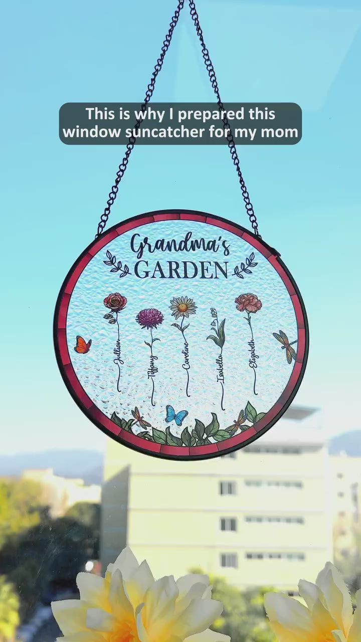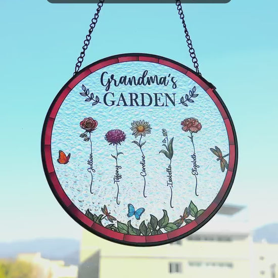 Birth Flower Grandma's Garden - Personalized Stained Glass Window Hanging Suncatcher