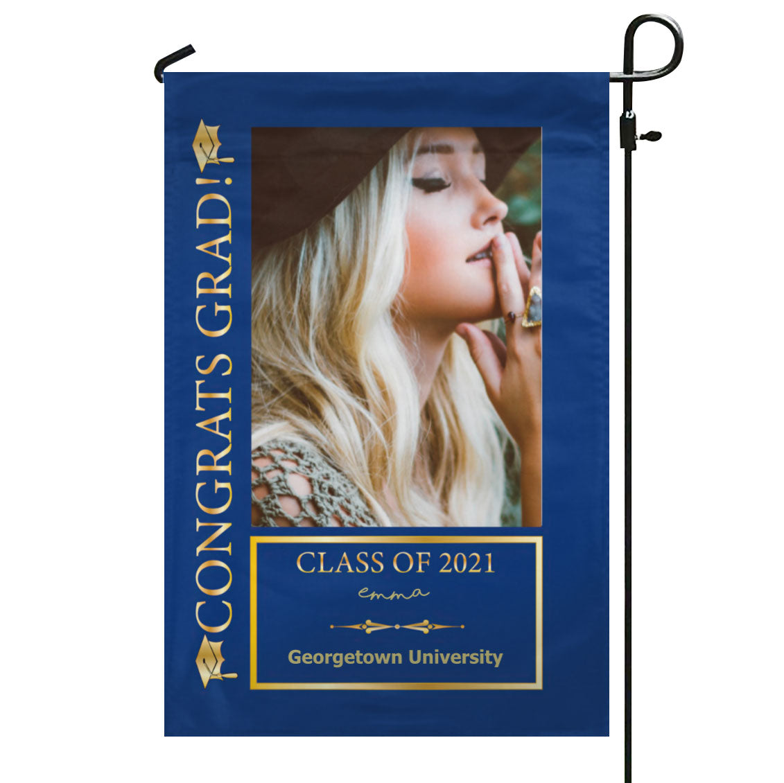 Blue Gold Photo Class of 2021 Congrats Grad Garden & House Flag