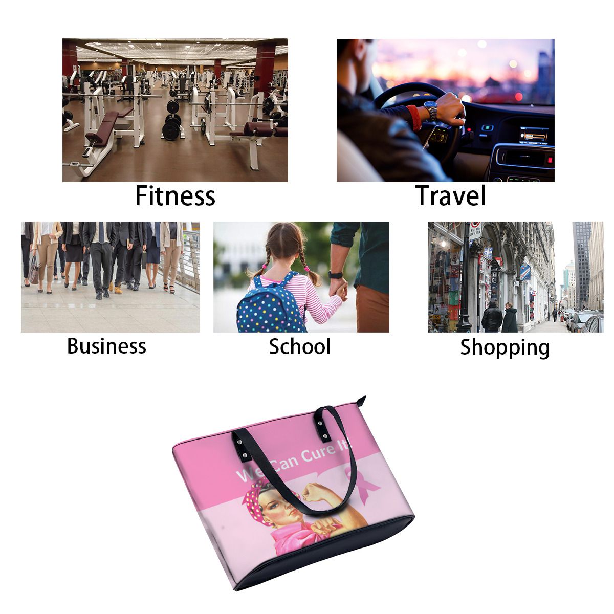 Breast Cancer Awareness Rosie the Riveter Shoulder Bag No.QHLOCQ