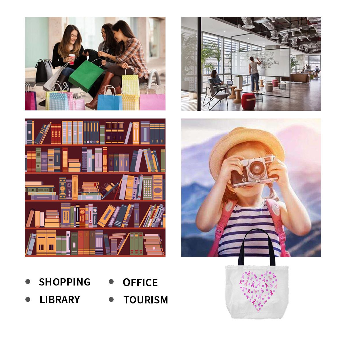 Breast Cancer Pink Ribbon Canvas Bag No.3PL85D