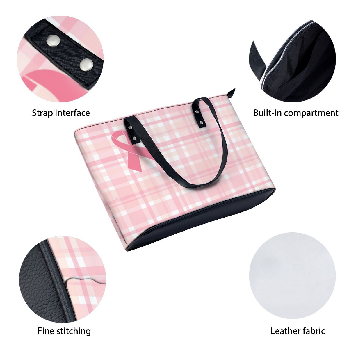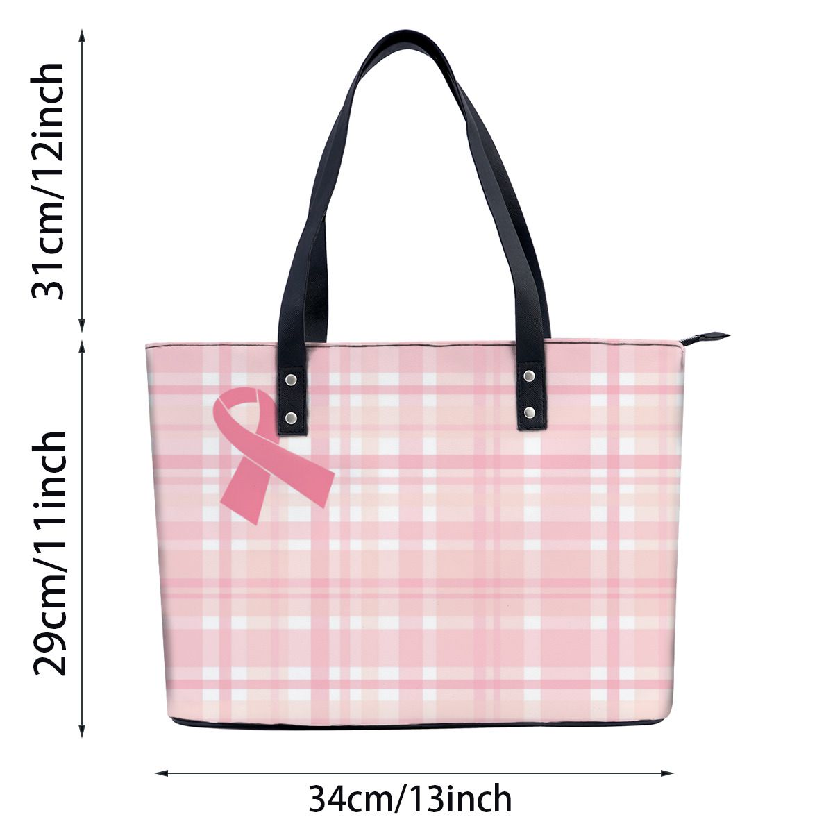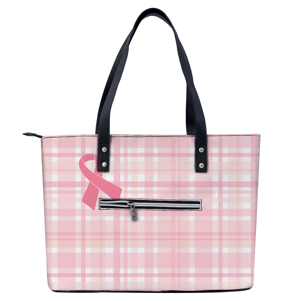 Breast Cancer Pink Ribbon Plaid Shoulder Bag No.X93MBO