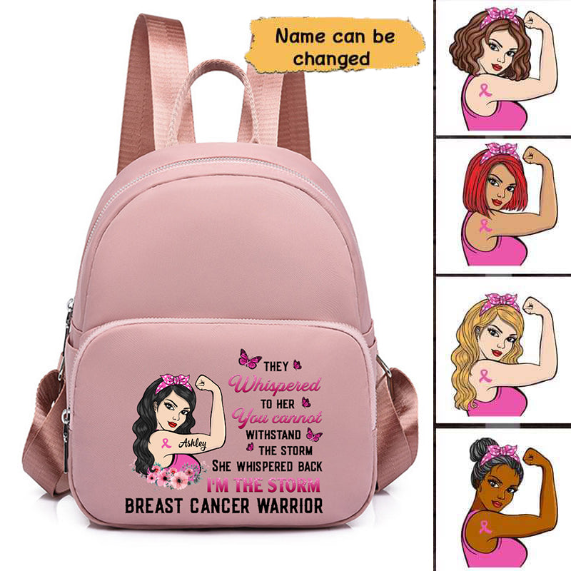 Breast Cancer Warrior The Storm Strong Woman Personalized Backpack