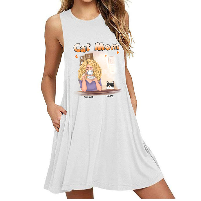 • Sundresses for women with two side hidden pockets,casual summer dress,round-neck,midi knee length,sleeveless casual loose style,A-line t-shirt dress