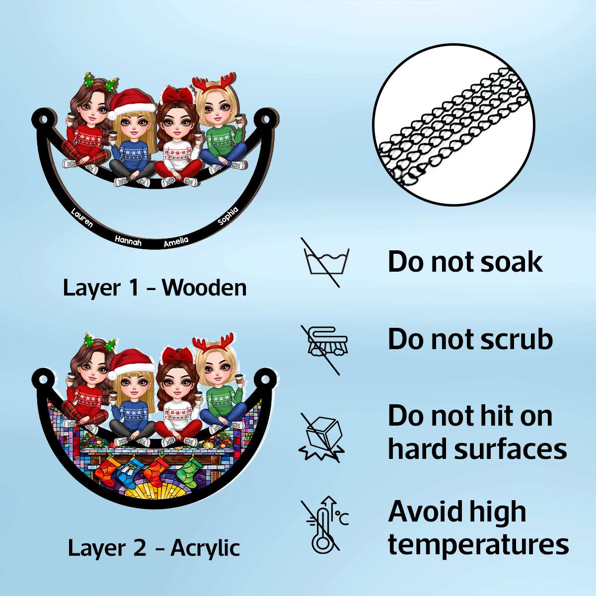 Christmas Besties Sisters Faux Stained Glass Personalized Suncatcher Ornament