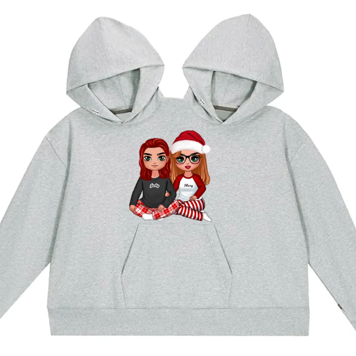 Christmas Doll Couple Sitting Hugging Personalized Couple One-Piece Hoodie Sweatshirt