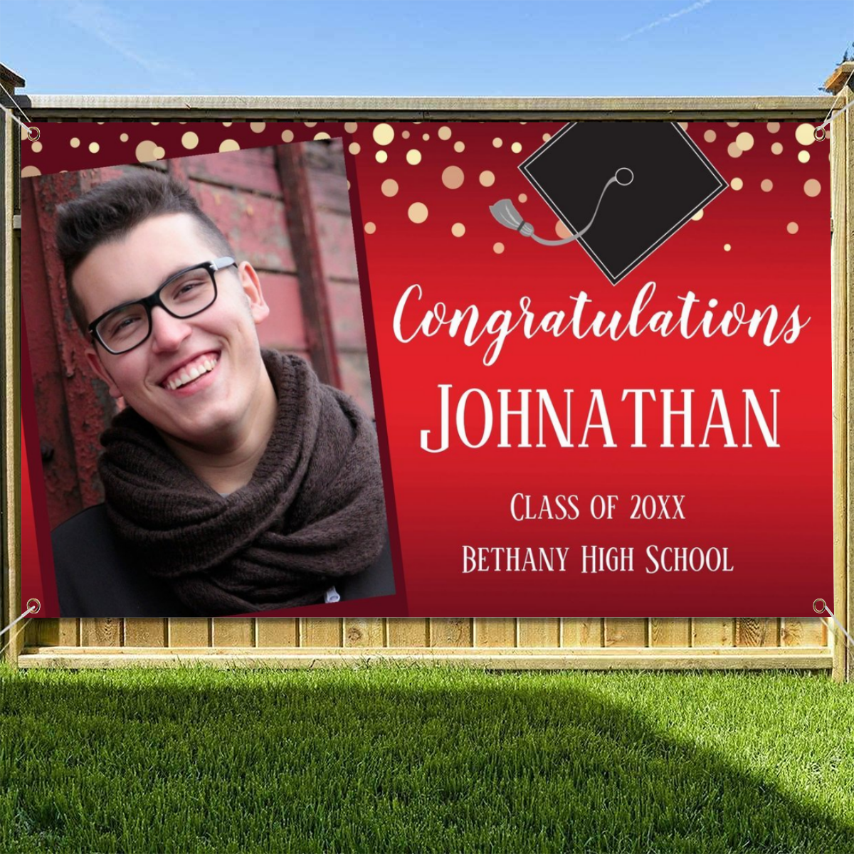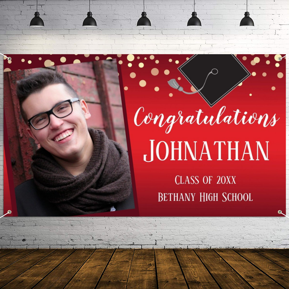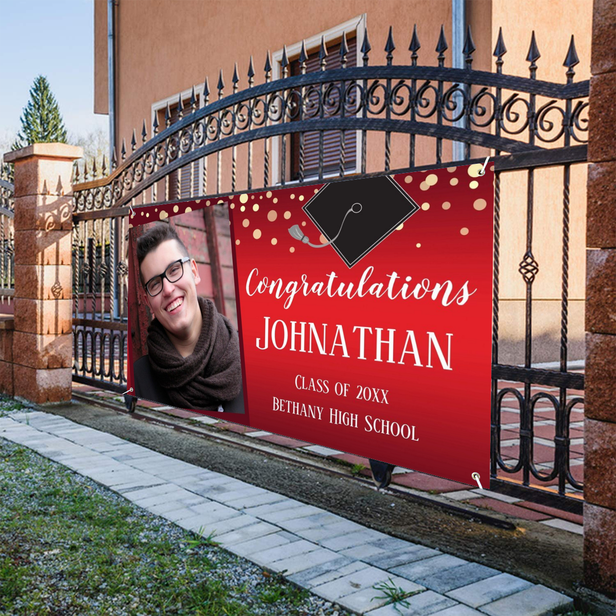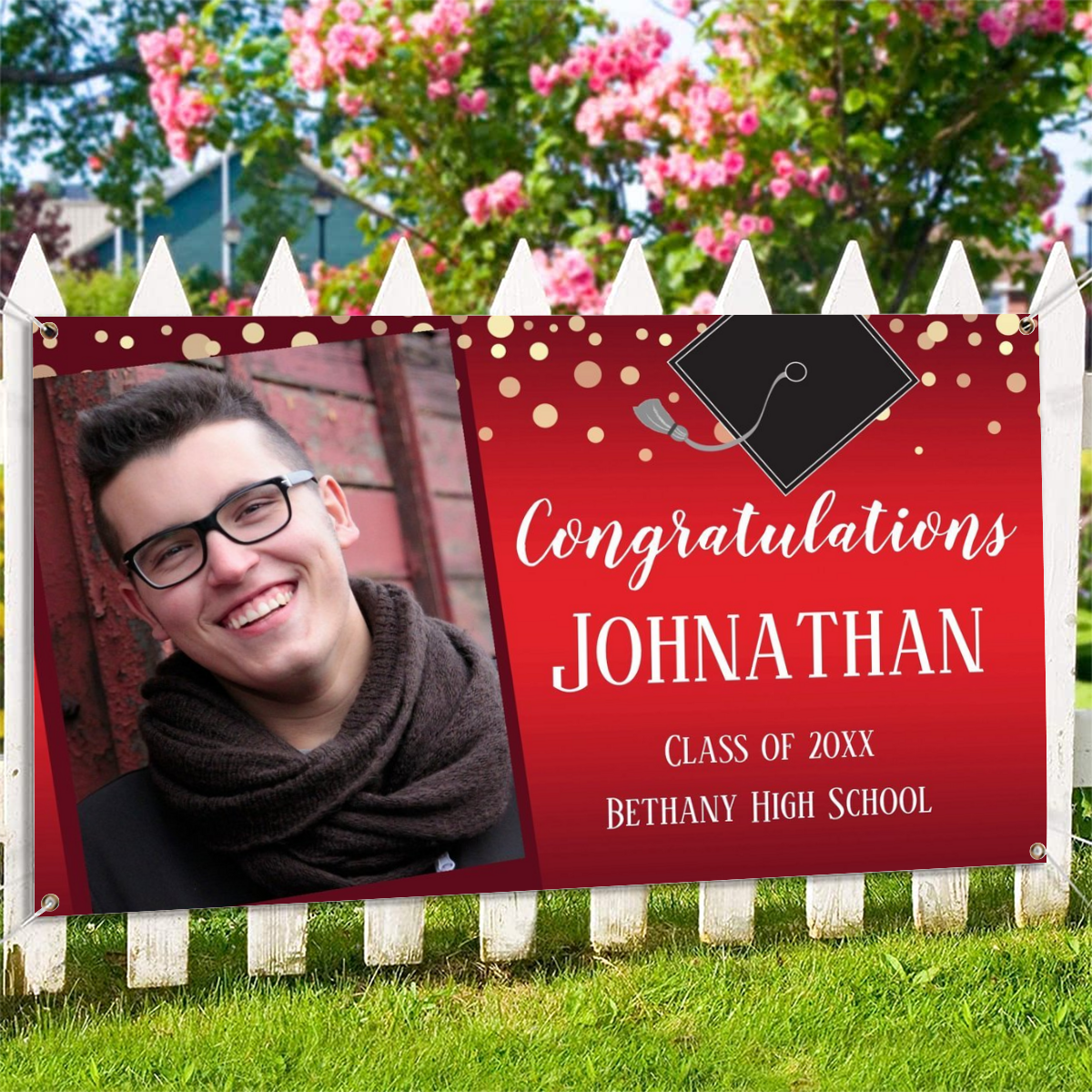 2022 Personalized Name/Photo, Congratulations Graduation Red with Confetti Photo Banner