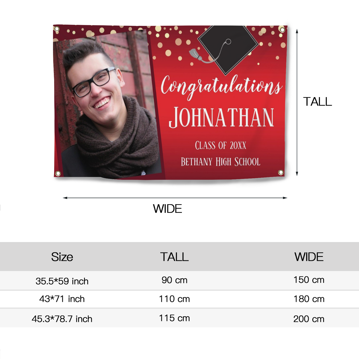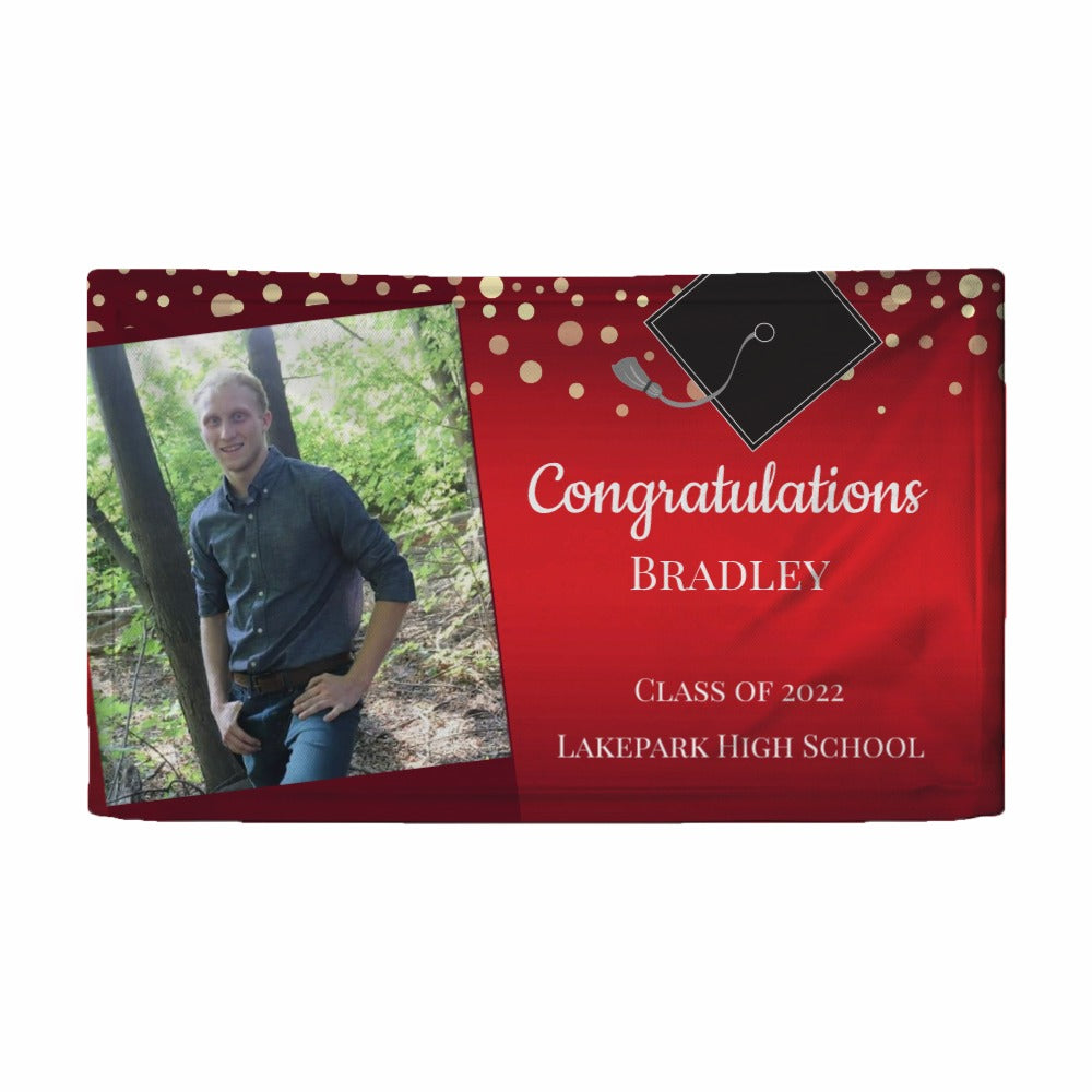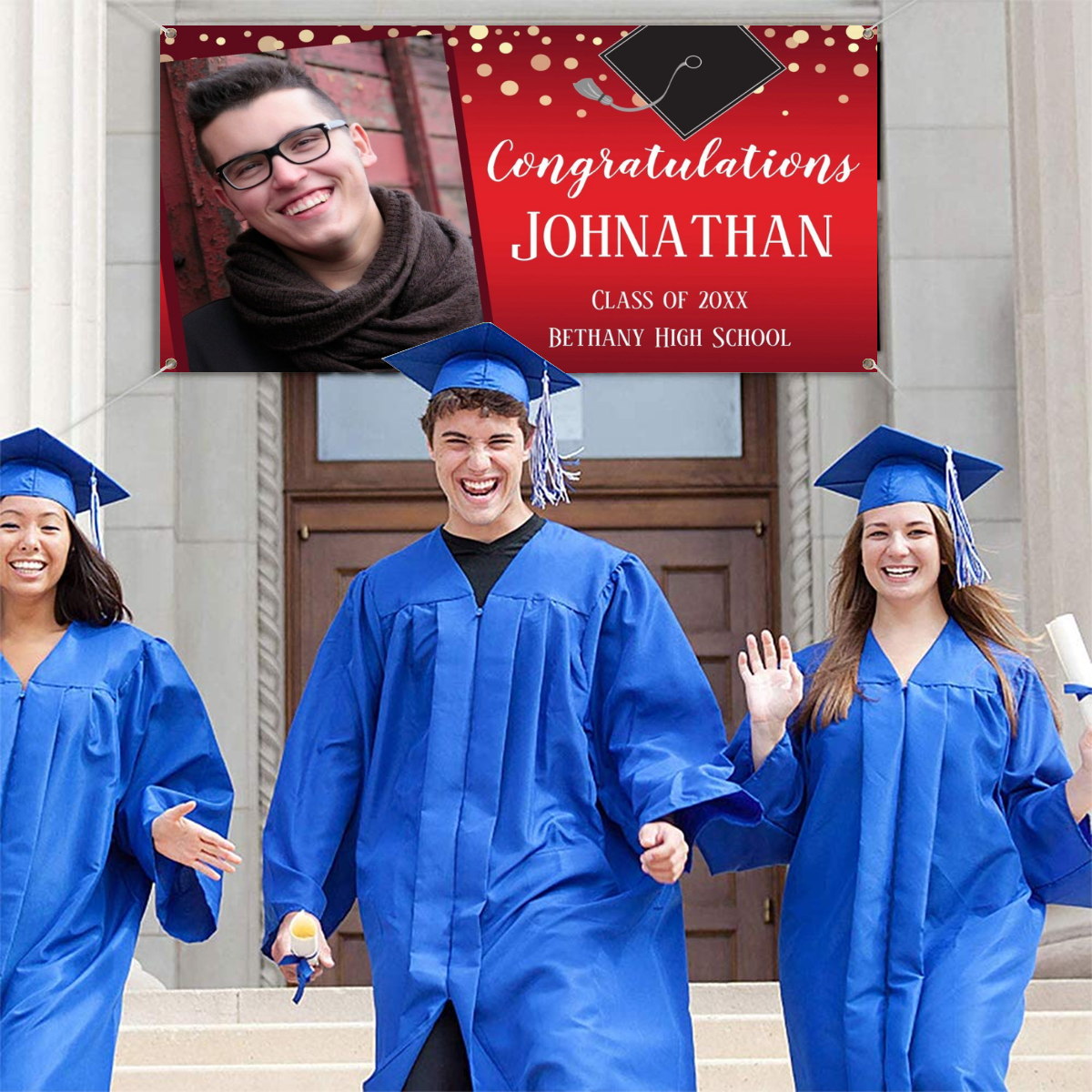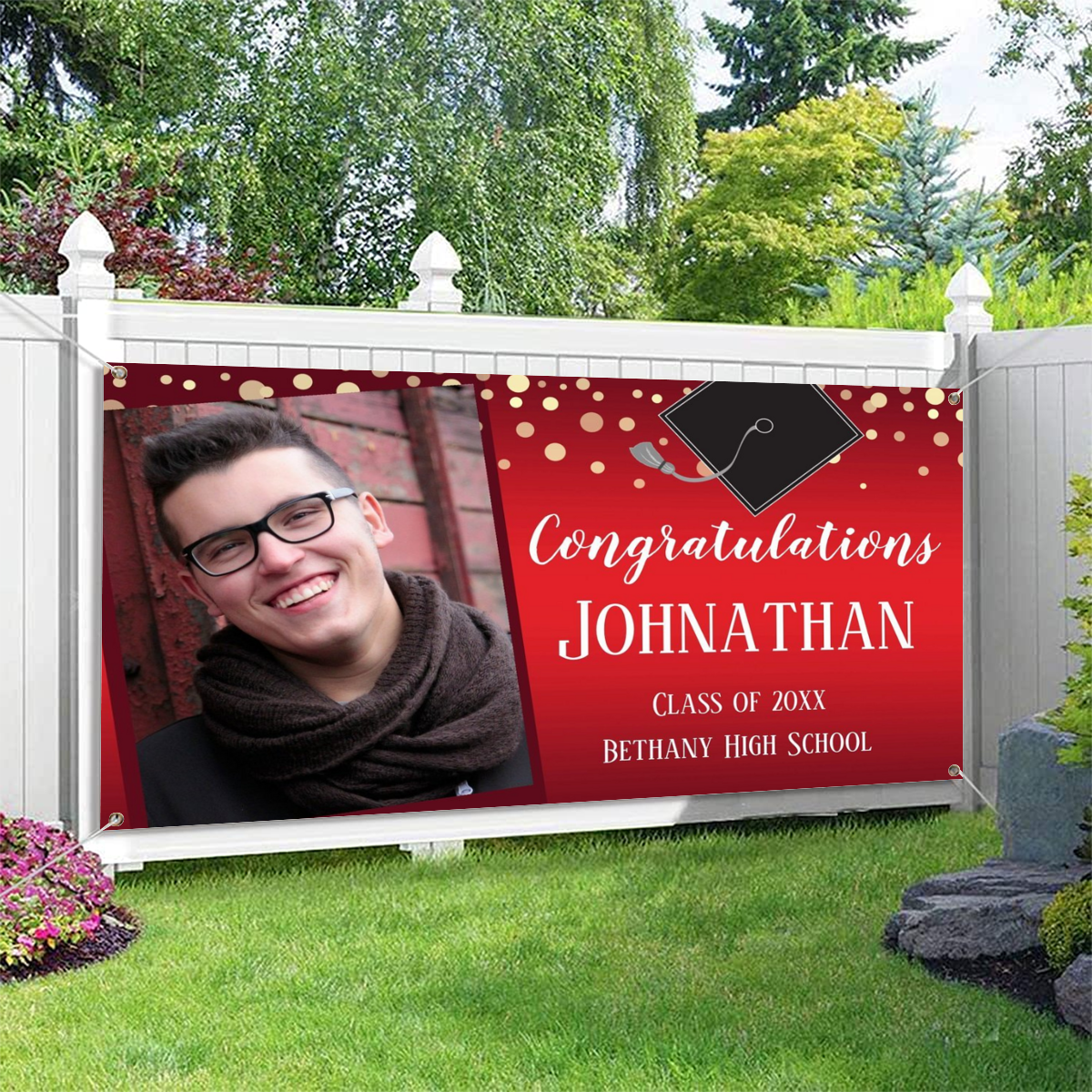 2022 Personalized Name/Photo, Congratulations Graduation Red with Confetti Photo Banner