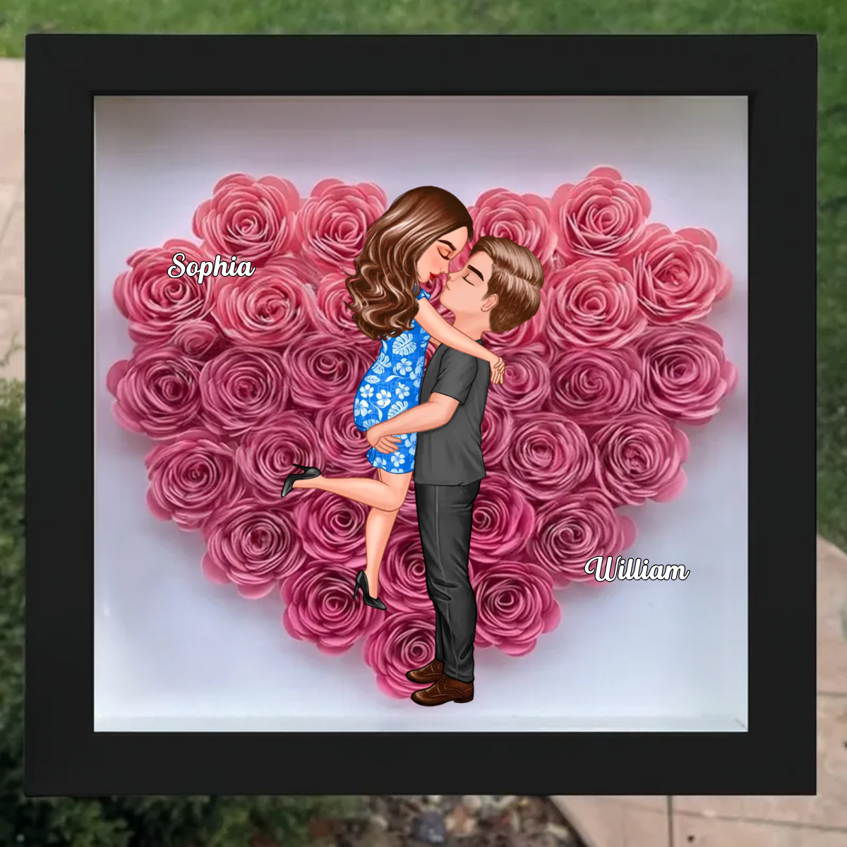 Couple Hugging Kissing - Gift For Couples - Personalized Custom Heart Rose Shadow Box