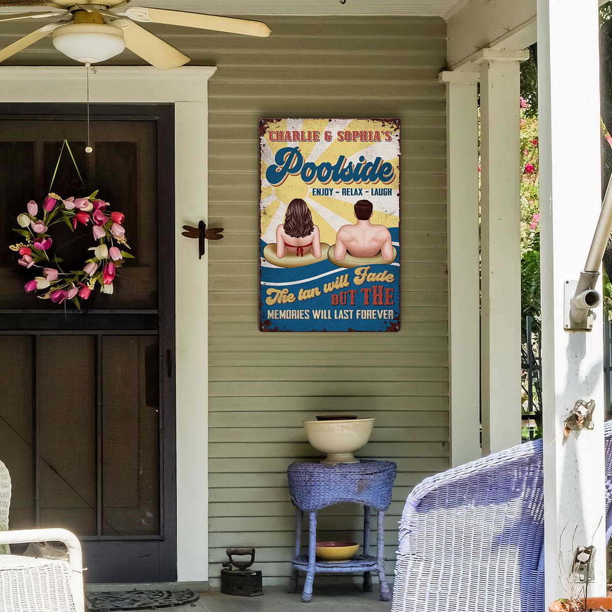 Couple Poolside Enjoy Relax Laugh Personalized Metal Sign