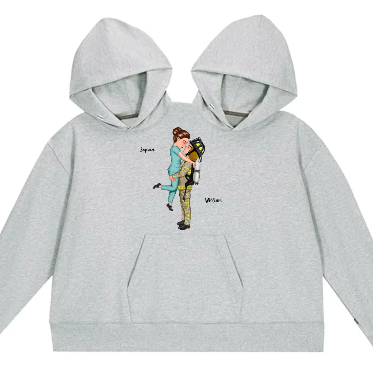 Couple Portrait, Firefighter, Nurse, Police Officer, Military, Chef, EMS, Flight, Teacher, Gifts by Occupation - Personalized Couple one-piece Hoodie