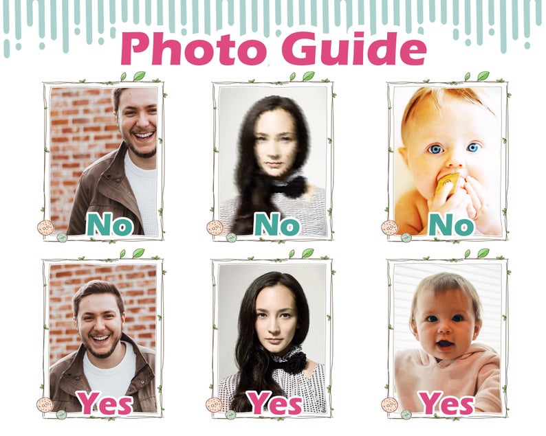 Please make sure we can see the face you want clearly on the socks, please make sure the head or face is not cut off in the picture. Additionally, let us know on your order notes if you don't want us to use a specific face in the photo. Please make sure the photos are close up and please do not upload any blurry or pixelated photos. Make sure the lighting in the photo is good and the photo is not a dark photo. Natural lighting on the face always works best. The better the quality of your photo, the better your socks will turn out.
