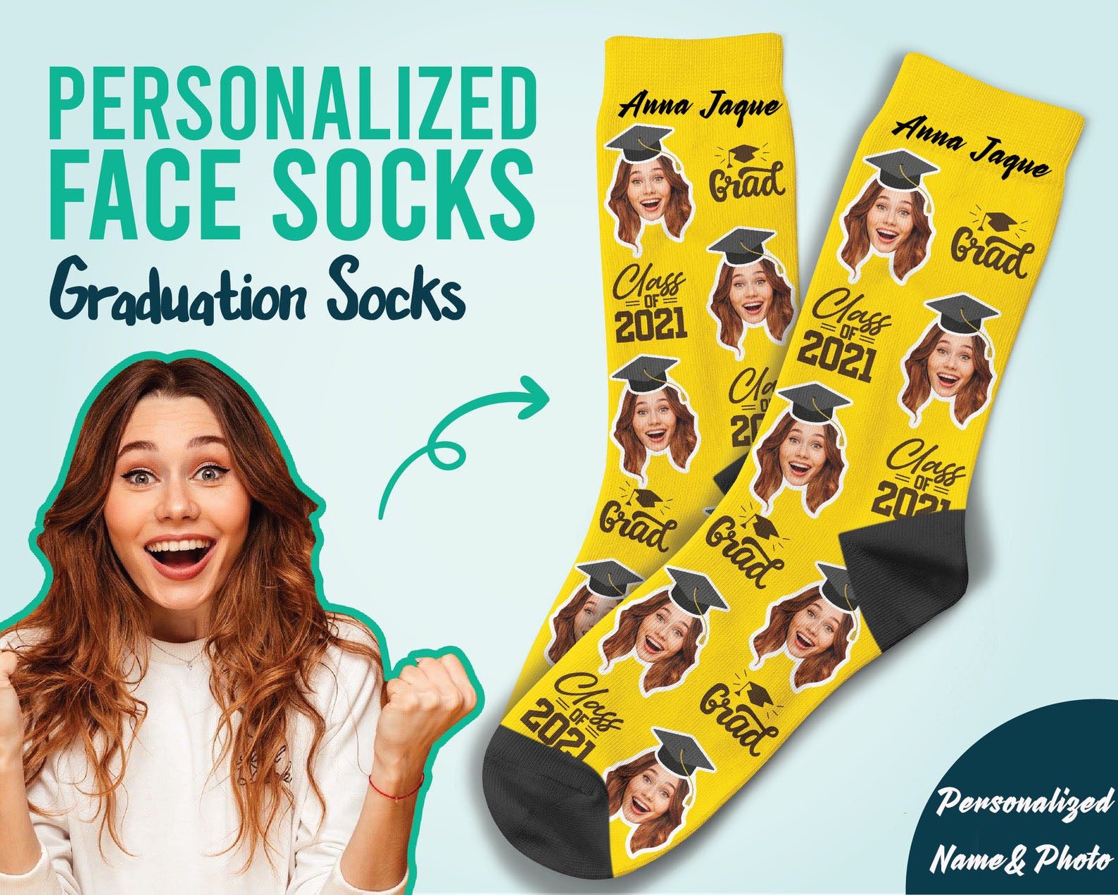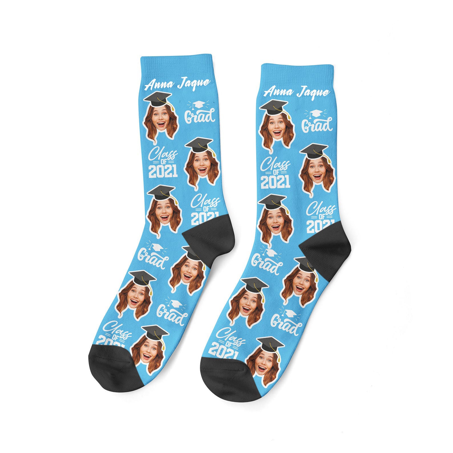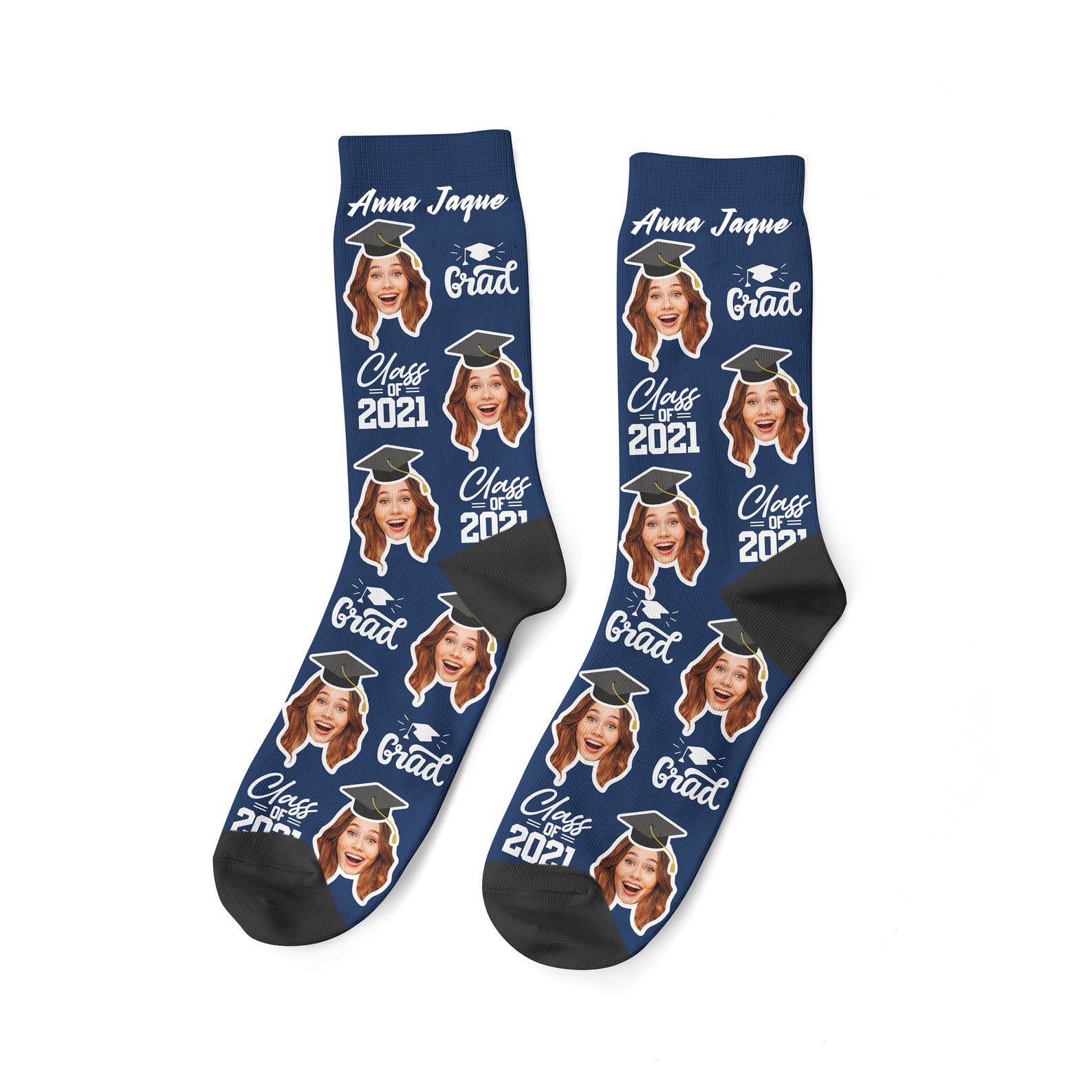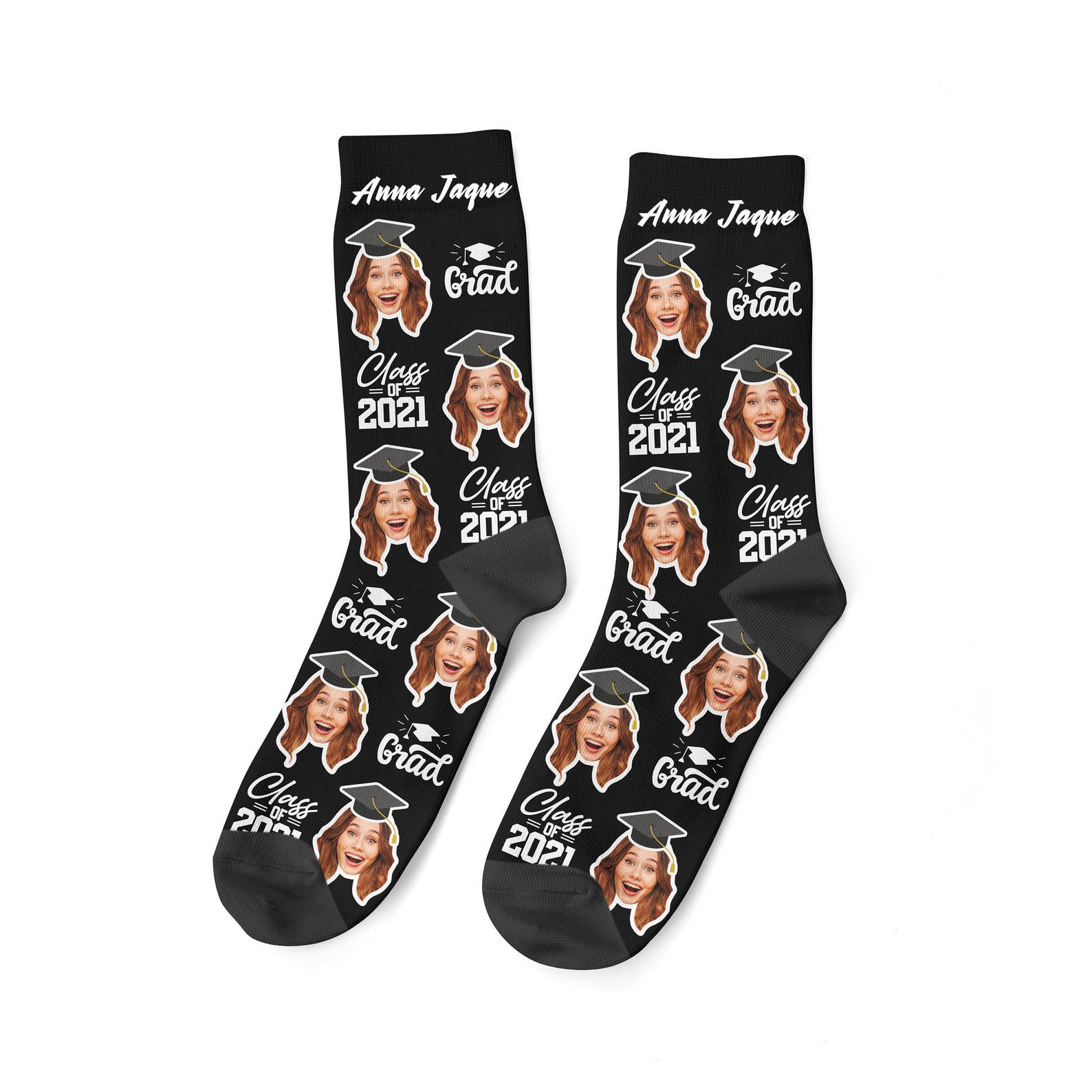 Custom Graduation Face Socks, Personalized Name & Photo Socks